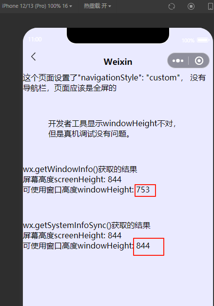 非skyline项目,页面配置自定义导航栏,获取的windowHeight数值是错误的