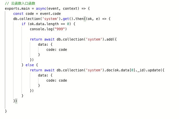 const res3=await db.collection('todos').doc('xxxxxid').update({data{code:"heheh"}});