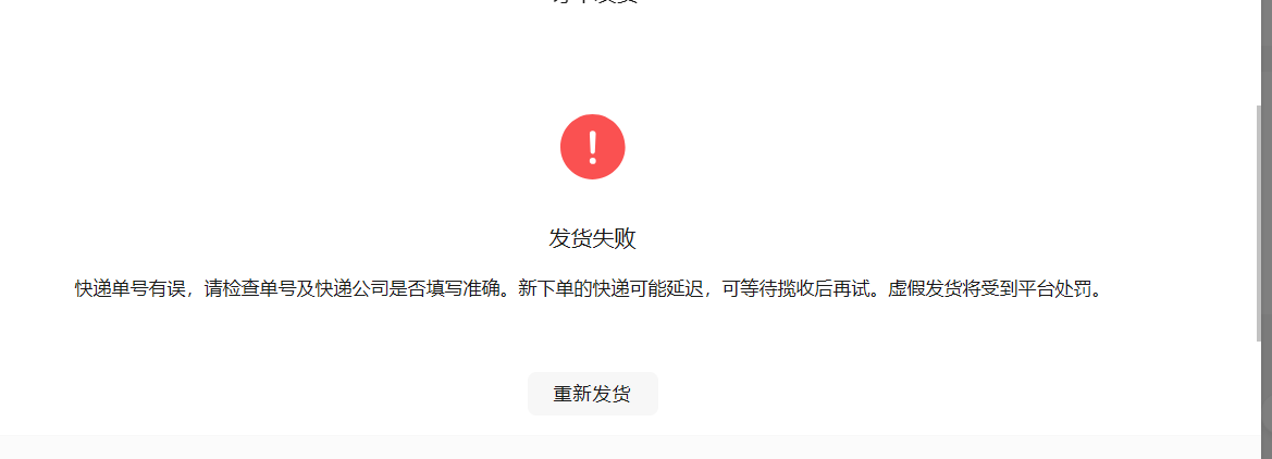 请问我使用的自行寄件功能,但是我把运单号填写到后台 点击发货,为什么给我显示发货失败,