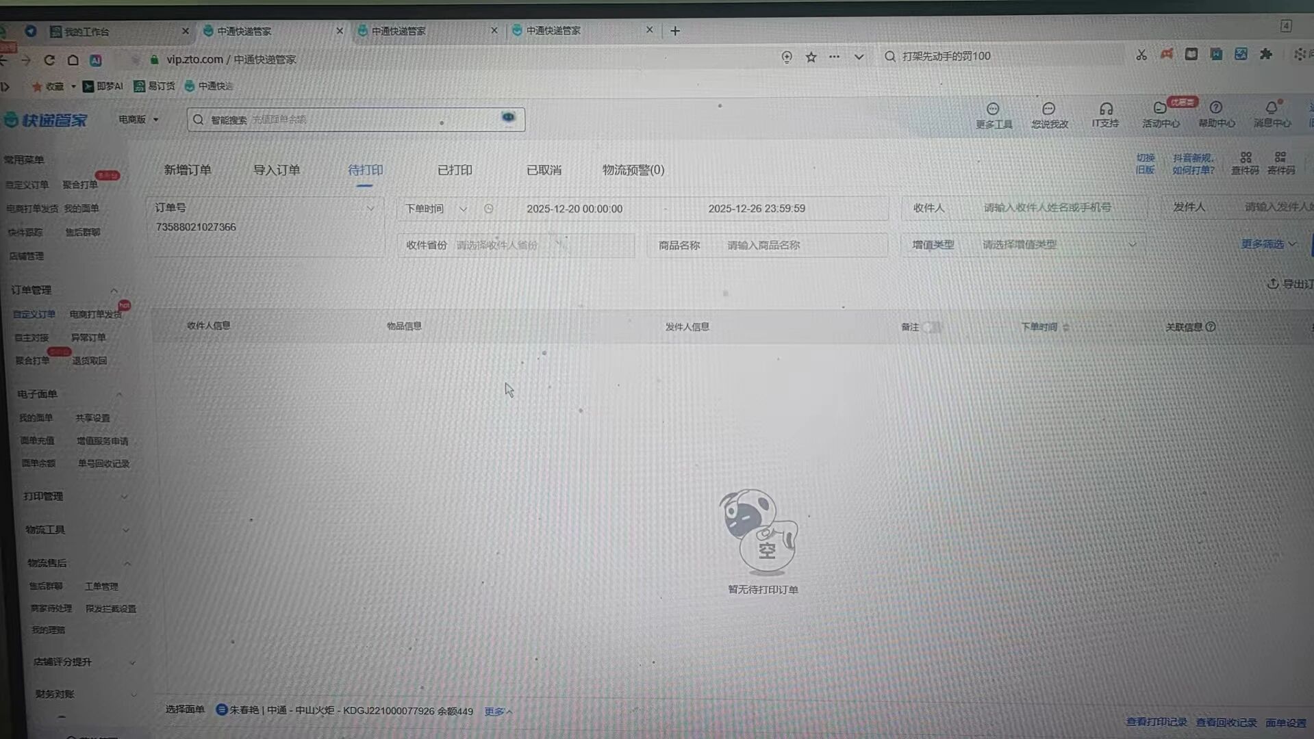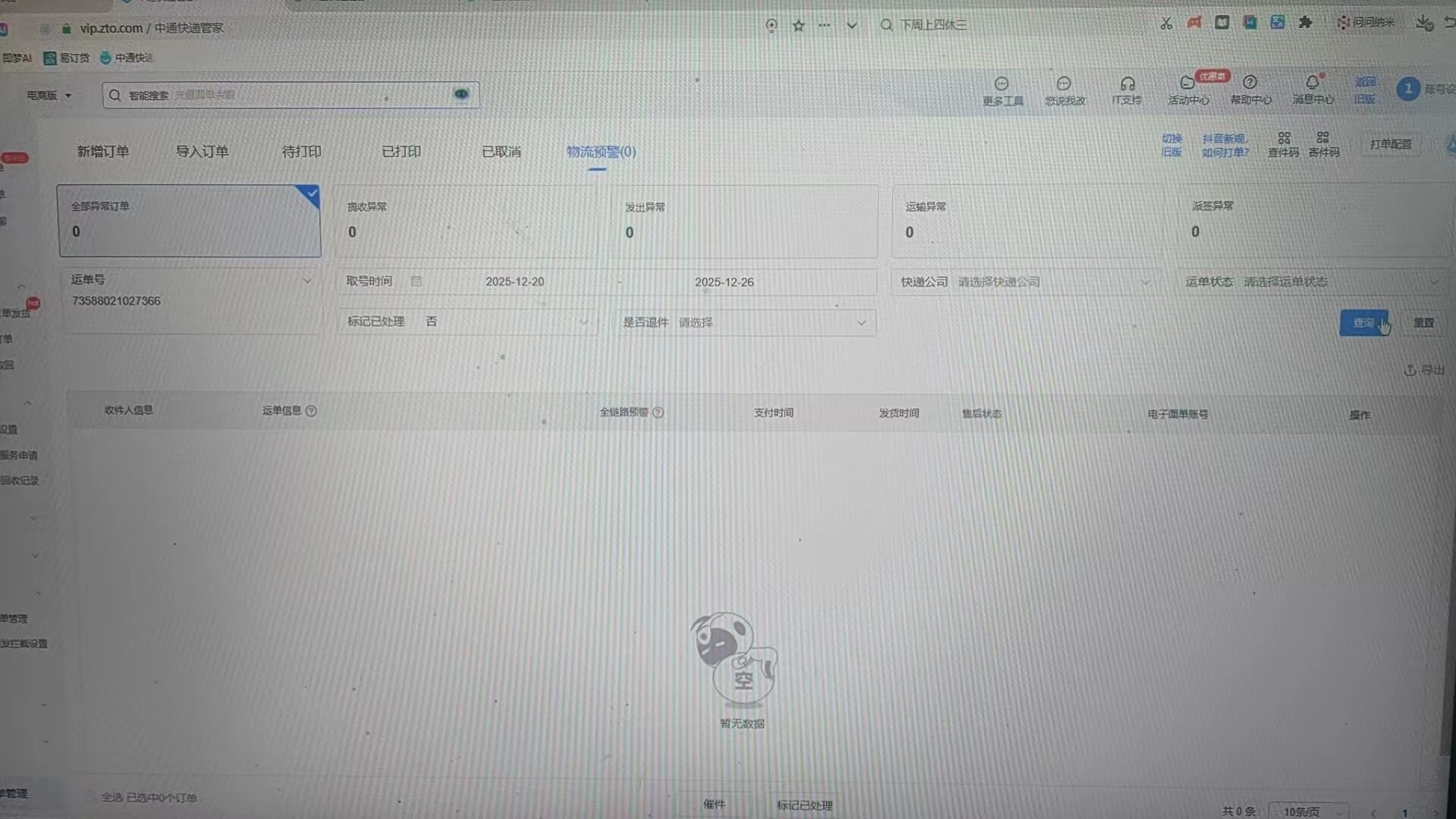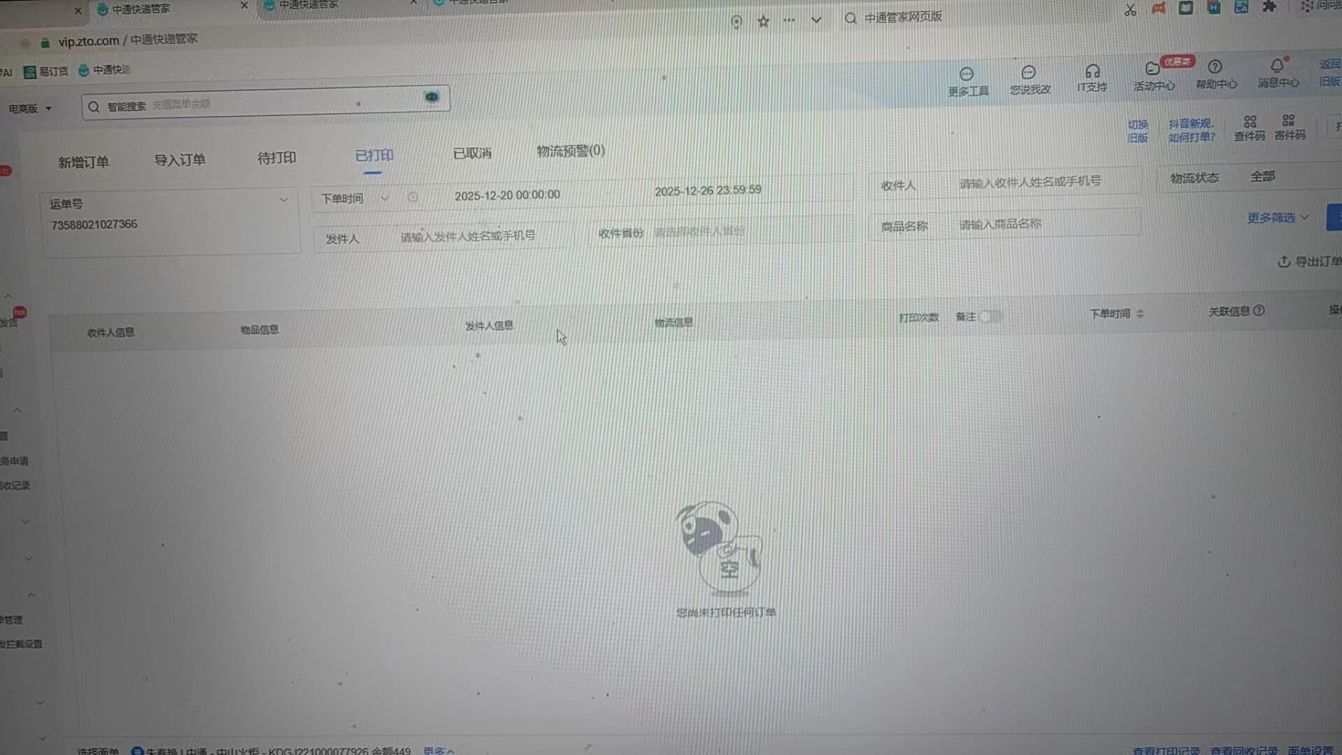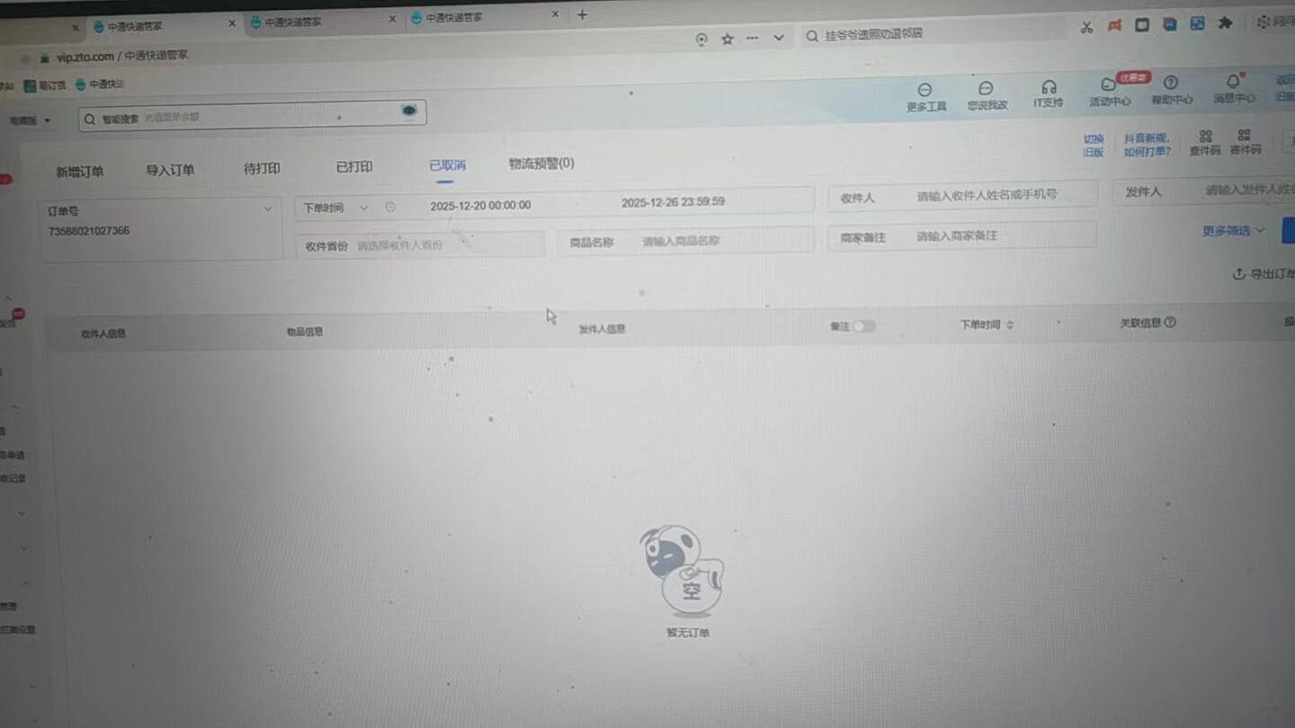 1: 该运单无法在快递管家中查询到 https://vip.zto.com/login