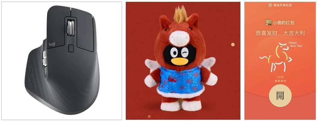罗技大师系列 MX Master 3S 无线蓝牙鼠标、马年生肖公仔、微信开放社区动态红包封面
