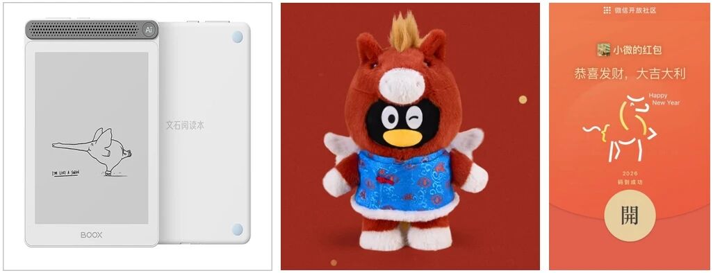 BOOX 文石 6 英寸墨水屏电子书阅读器、马年生肖公仔、微信开放社区动态红包封面