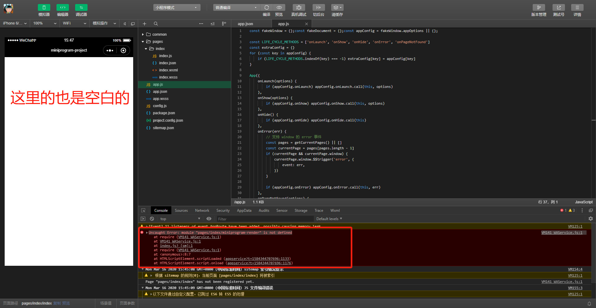 出现 Uncaught Error: module "pages/index/miniprogram-render" is not defined