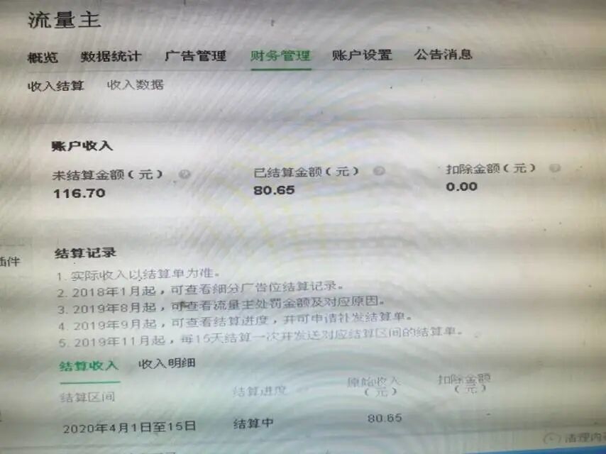 公众号流量主结算一直是结算中状态4.13通过的资料审核,哪位大神能帮我解决一下?我的账号:gh_5c1680c759ea