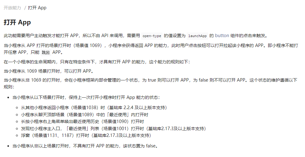 微信小程序不可以向APP跳转