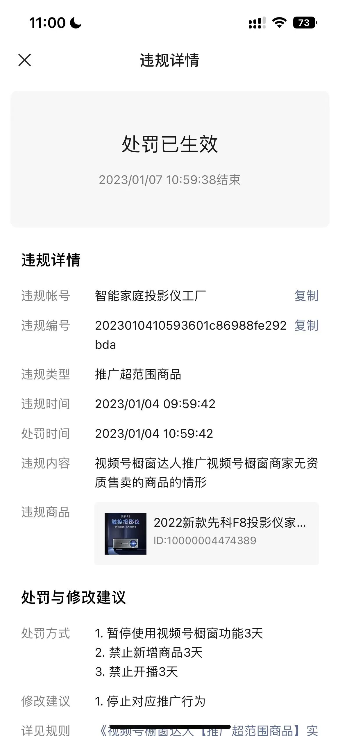 你好,根据平台规则,你涉及【发布/推广超出视频号橱窗商家资质的商品】违规导致被处罚,如有异议,可根据违规私信通知上的“申诉指引材料”,提供有效合理凭证进行申诉,感谢你对视频号橱窗功能的支持。