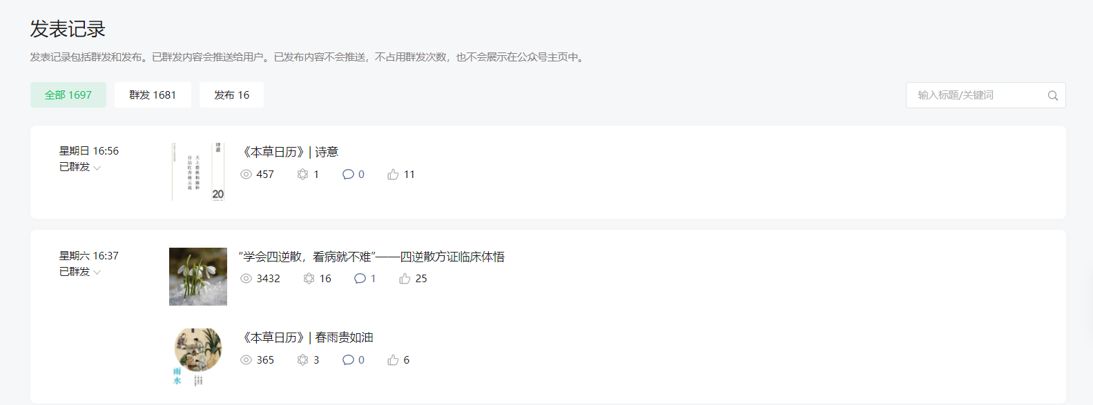 这是公众号后台的发表记录,没有显示发送信息