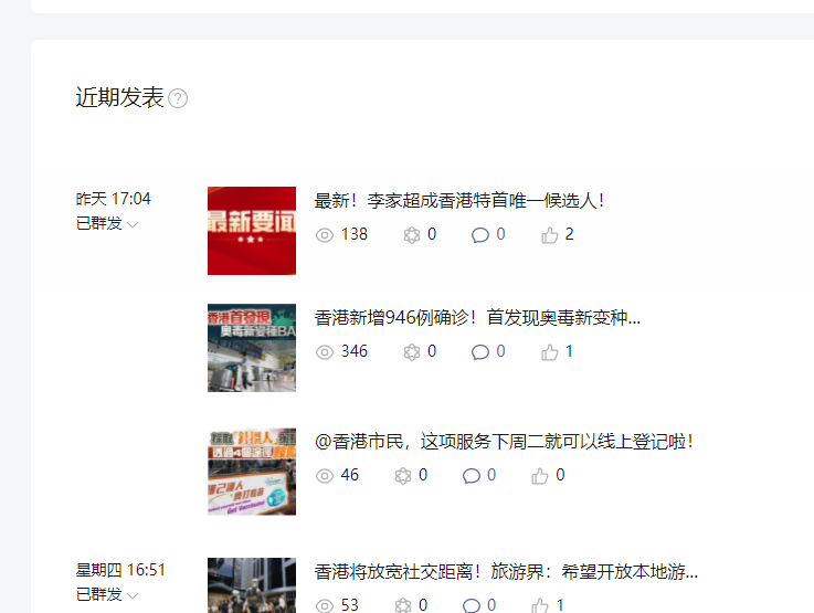 这是手机小助手上的发表记录,显示为已发表内容