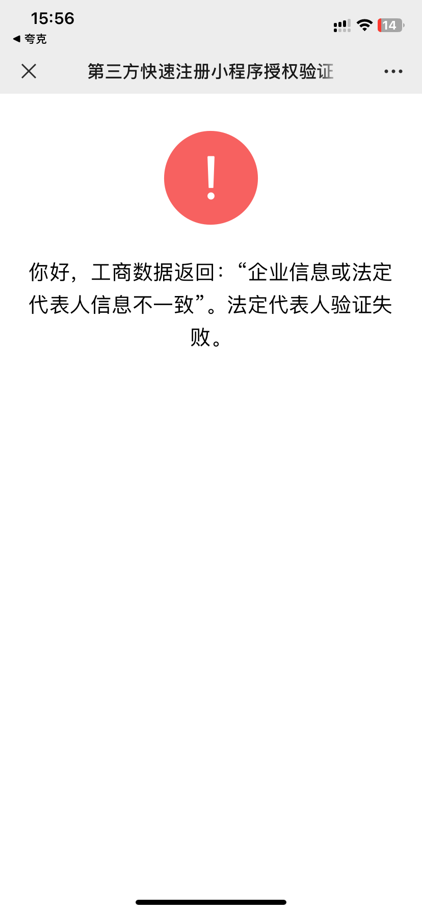证件号、营业执照、法人身份信息等都没有填错。反复试了好多次都是这样。微信扫码刷脸认证的时候弹出 "你好,工商数据返回:"企业信息或法定代表人信息不一致"。法定代表验证失败。“已经等了20多天了,还是不行!