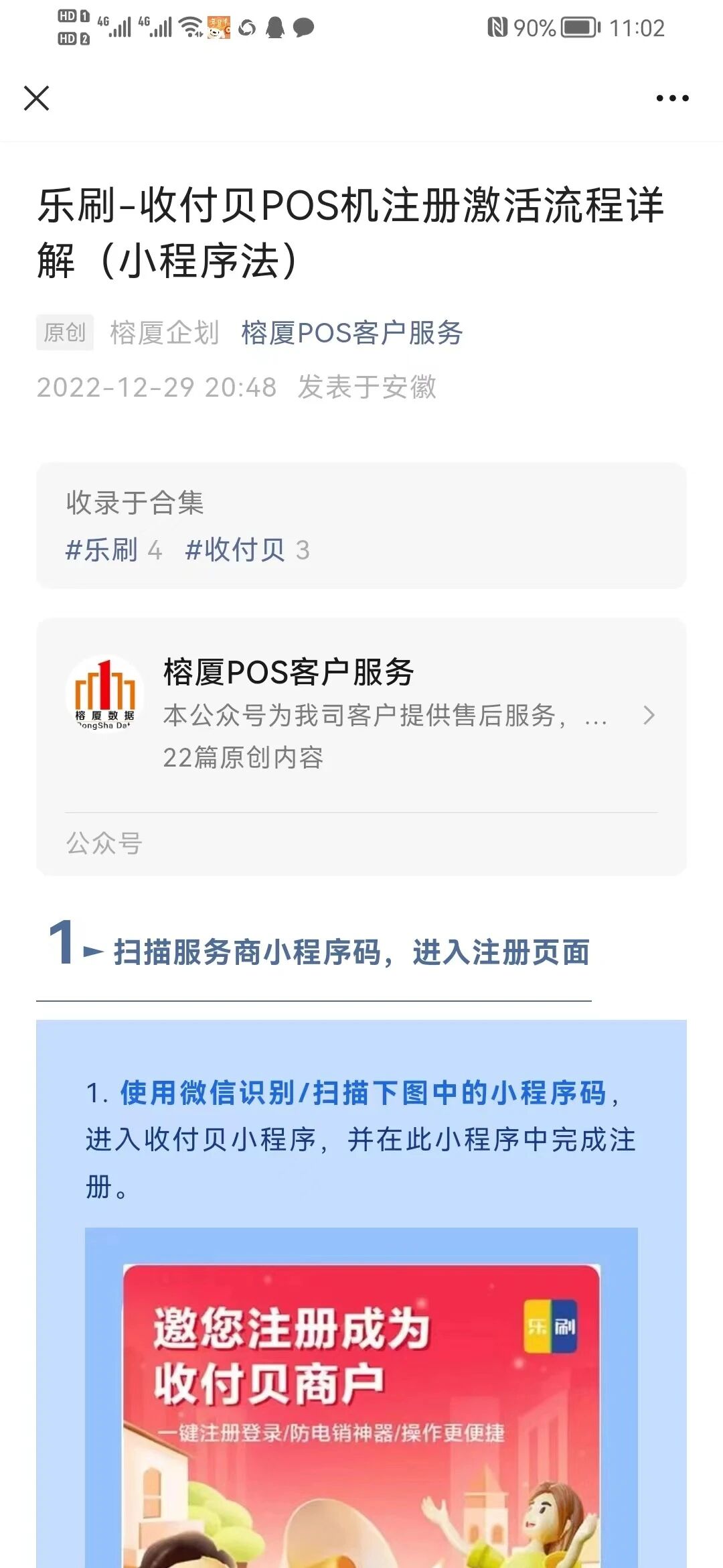 (1)文章标题:乐刷-收付贝POS机注册激活流程详解(小程序法)