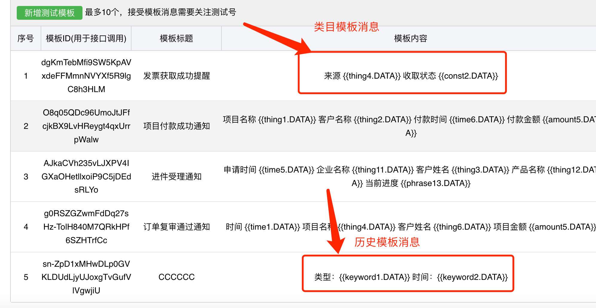 时 历史模板消息格式