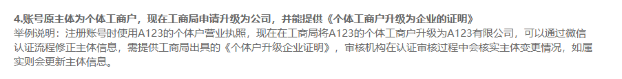 小程序正在用,现在个体户升级为公司,统一代码没变,那小程序是走认证还是变更主体流程
