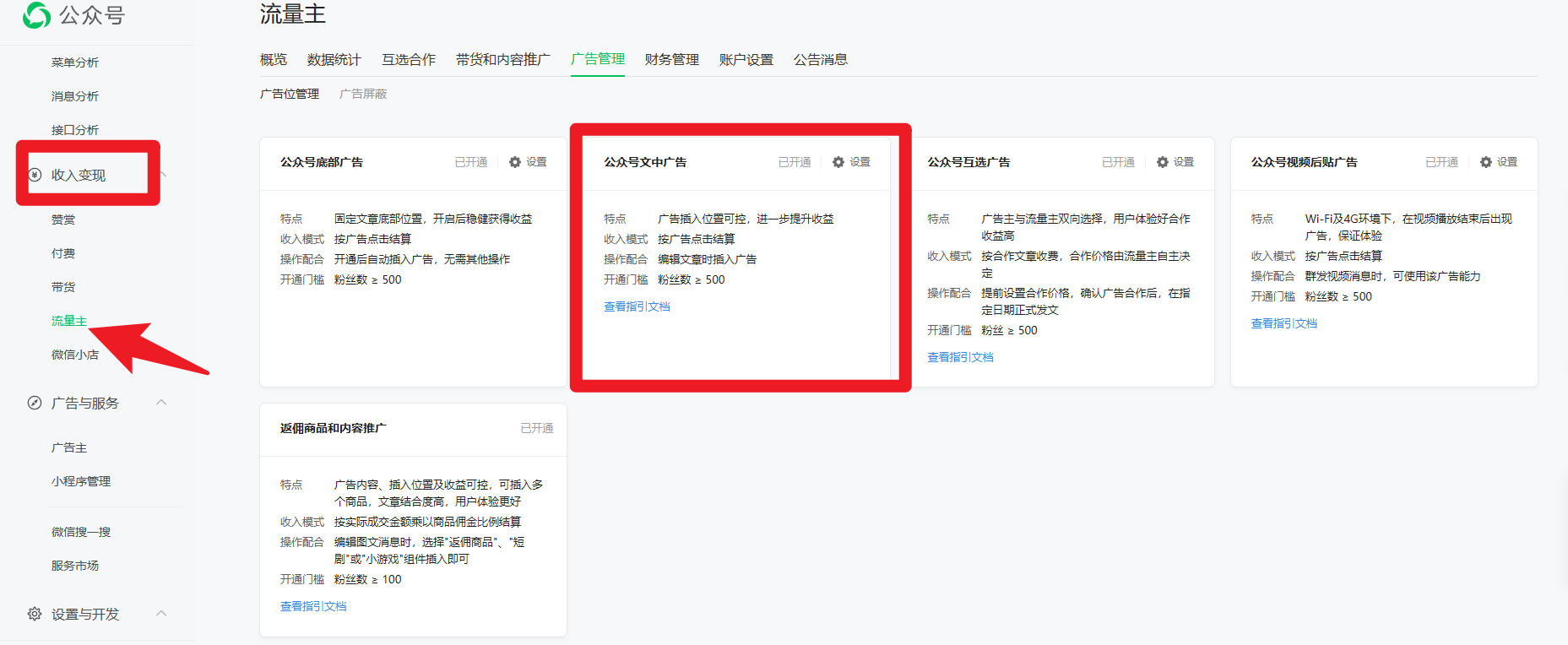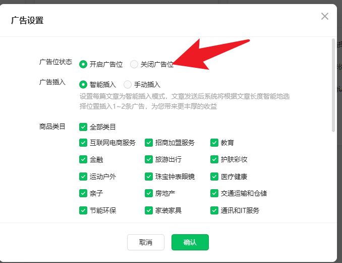 如果说你要关闭你公众号所有文中广告。