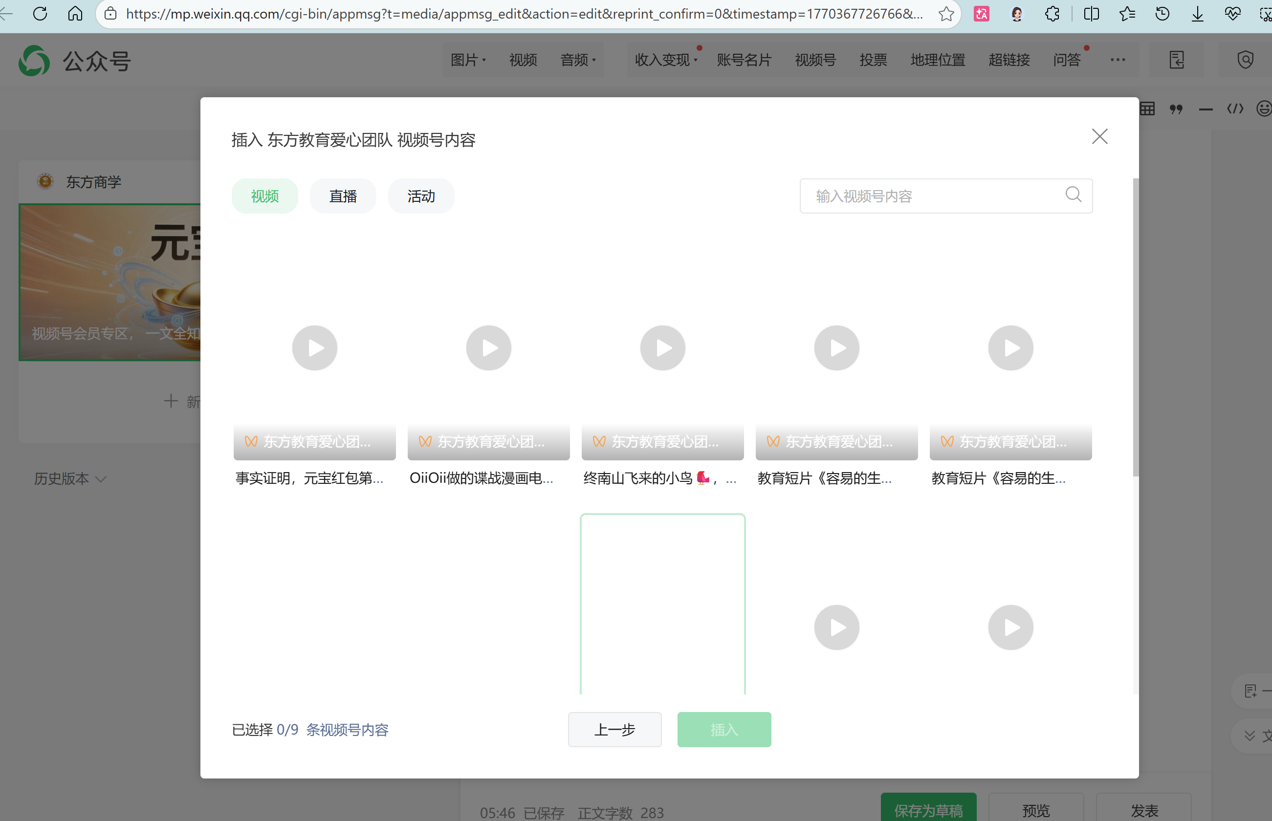 【问题描述】: 最近每次想在文章中插入视频号内容,都是出现下面这种情况,全是白的没有内容显示,换了好几个账号的视频,也是一样,试过不同地方的网络,也是打不开,就是显示如下