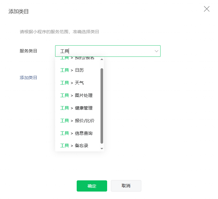 想添加工具-开票服务/企业代票工具 类目,查询不到,无法选择。只有个人主体类目,查不到非个人主体类目。