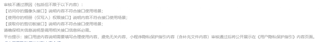 你好,建议仔细代码中是否含有相关代码,若含有相关代码且未使用,可将其代码移除,重新提交审核、重新完善隐私协议。