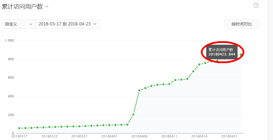 - 按理说如果有一千多用户访问过小程序的某个页面,累计用户数应该也大于一千