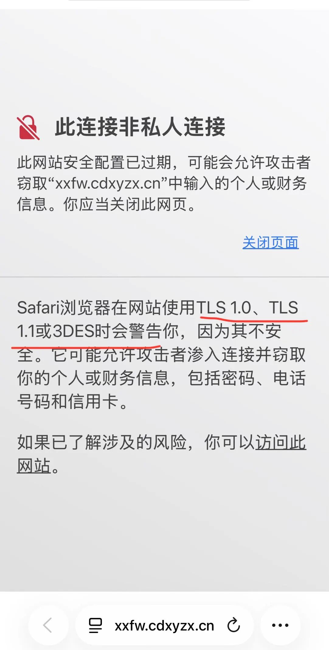 网站的tls证书不安全。