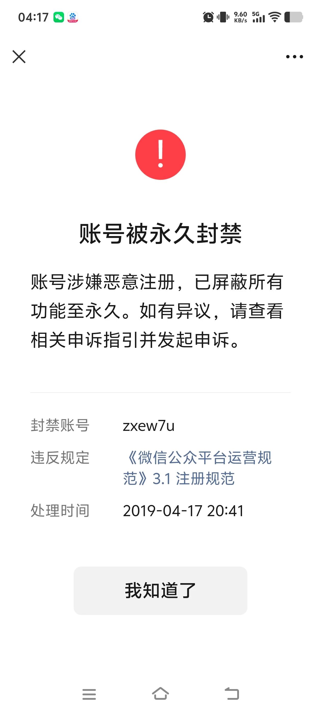 我注册了一个公众号,什么都没有发,它显示我恶意注册,把我永久封了,这是什么意思?