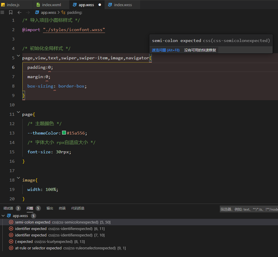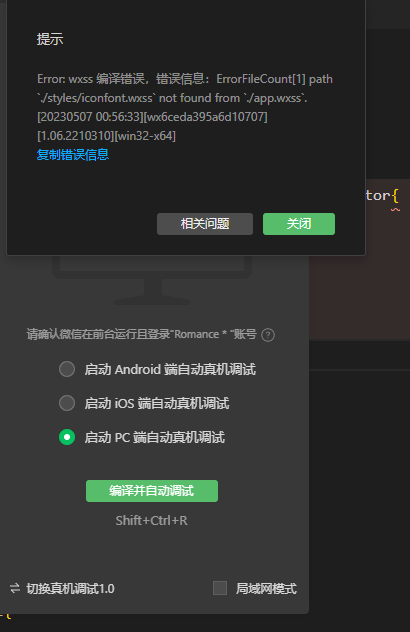 应该是iconfont.wxss路径错了,其他地方的报错是不是你的代码是从其他地方复制的,有特殊字符导致的?