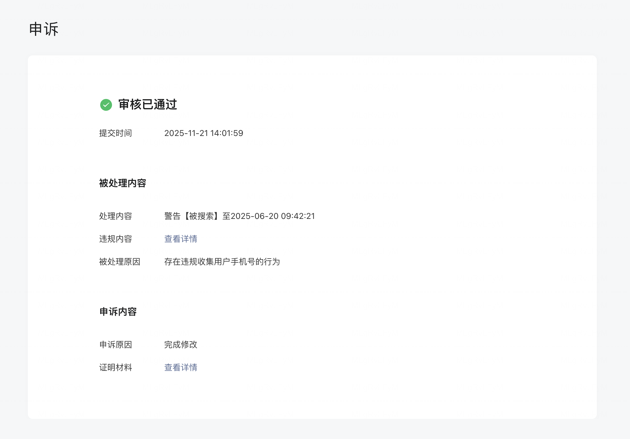 被封禁搜索功能后进行了申诉 申诉成功后还是无法打开被搜索功能