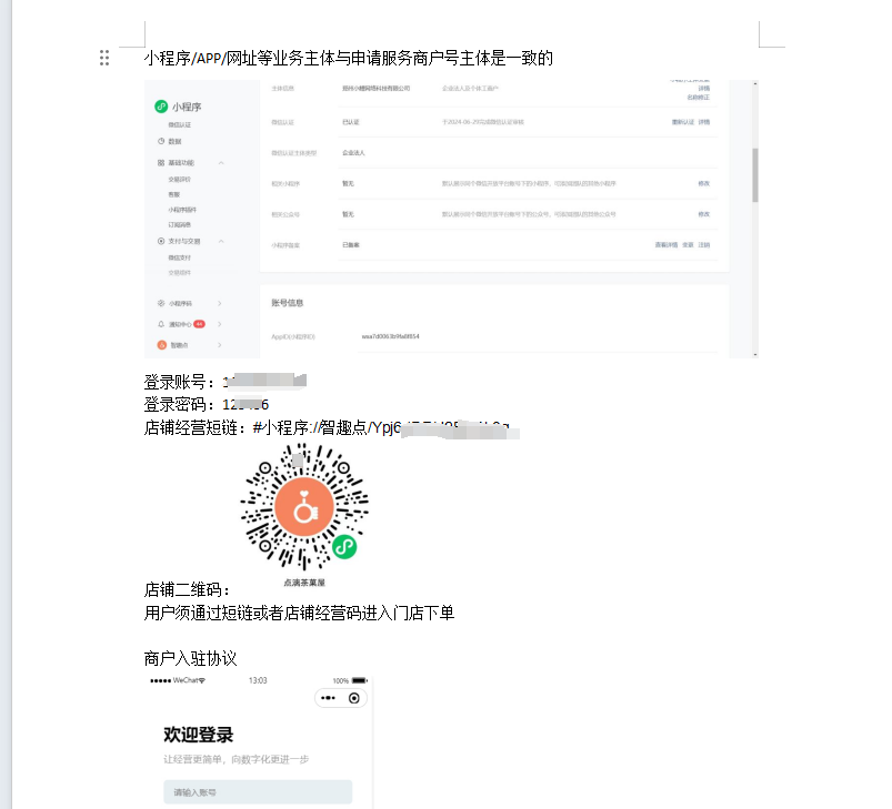 业务场景小程序APPID未能搜索到小程序,无法实测,无店铺概念(无具体业务场景),未能确定经营场景,需待完善业务场景再申请,接入收付通需有真实业务场景可实测。且小程序/APP/网址等业务主体需与申请服务商户号主体一致,请核实。 注:请提供用户端,在营可实测的用户平台信息(线上小程序appID)