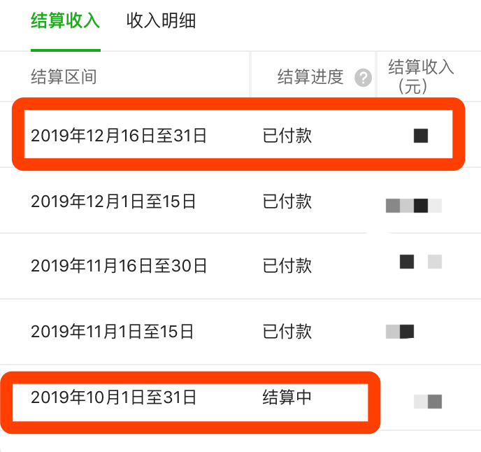「1」2019年10月的还在结算中。 「2」 2019-12-16至31 结算收入有误 数据对不上 「3」2020年的结算收入账单呢?