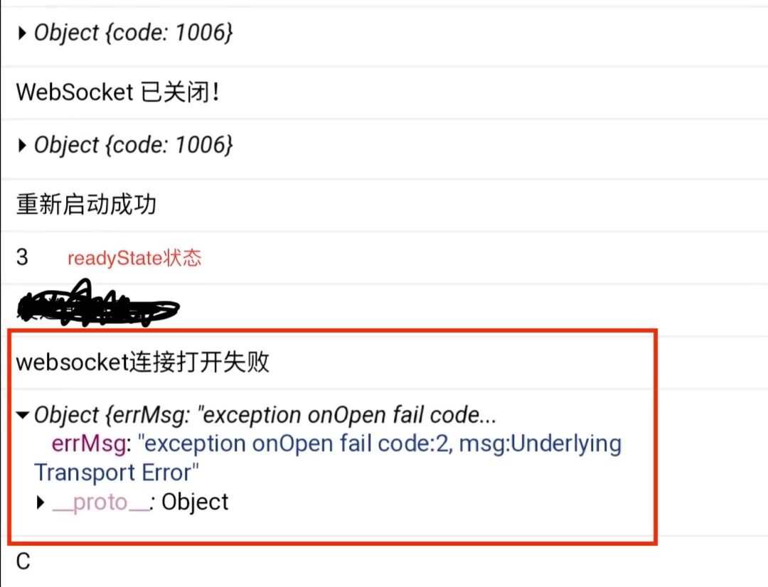 websocket连接重新连接后,连接成功,但是不能打开,返回Exception onOpen fail code:2 ,msg:Underying Transport Error。请问是什么问题?