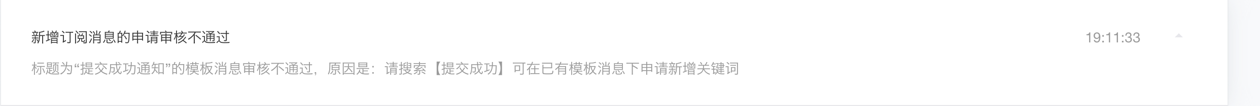 由于公司业务需求,申请了标题为【二维码收藏成功通知】的模板,关键词为【码名称】【收藏时间】,结果是不通过,不通过的原因:【提交成功】可在已有模板下申请新增关键词。
