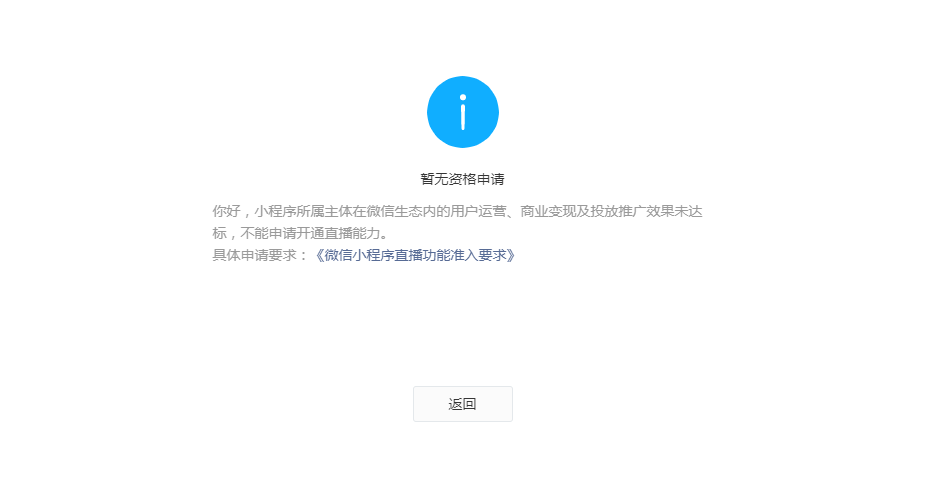 我们小程序符合要求了,但是开通直播的时候还是说暂无资格申请,是为什么呢?
