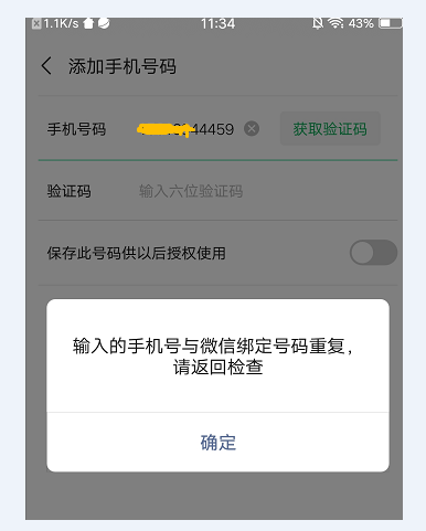 如上图,图中的手机号是没重复的。点击获取验证码一直报重复。