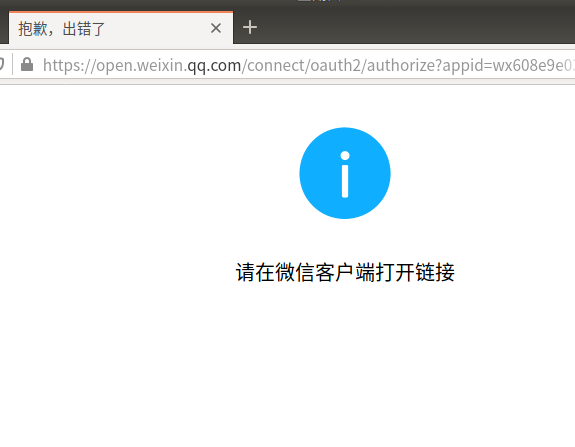 https://open.weixin.qq.com/connect/oauth2/authorize?appid=wx608e9e0361968ece&redirect_uri=http%3A%2F%2F192.168.40.131&response_type=code&scope=snsapi_userinfo&state=24af421f27e75175b9fcd947fcbd1934&connect_redirect=1#wechat_redirect