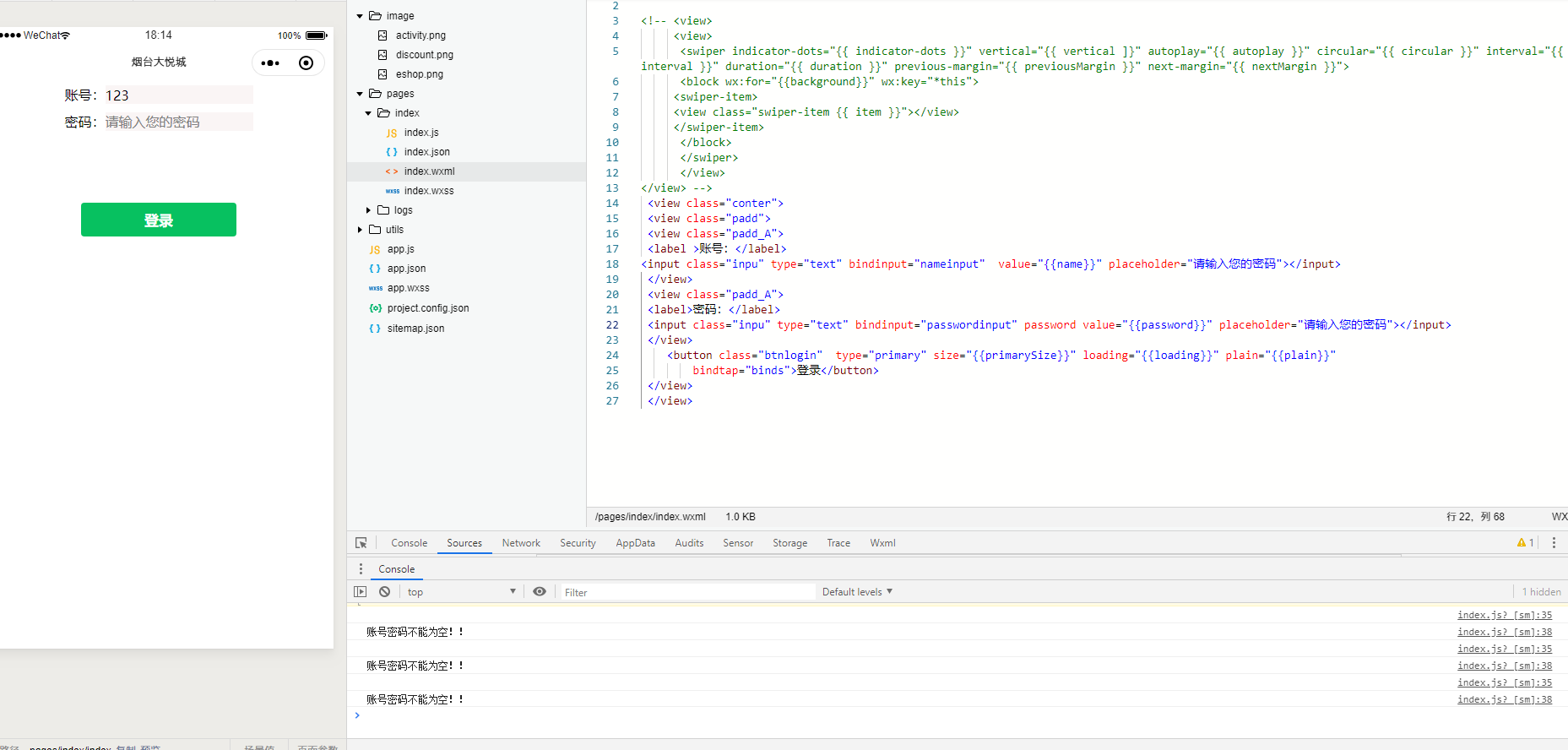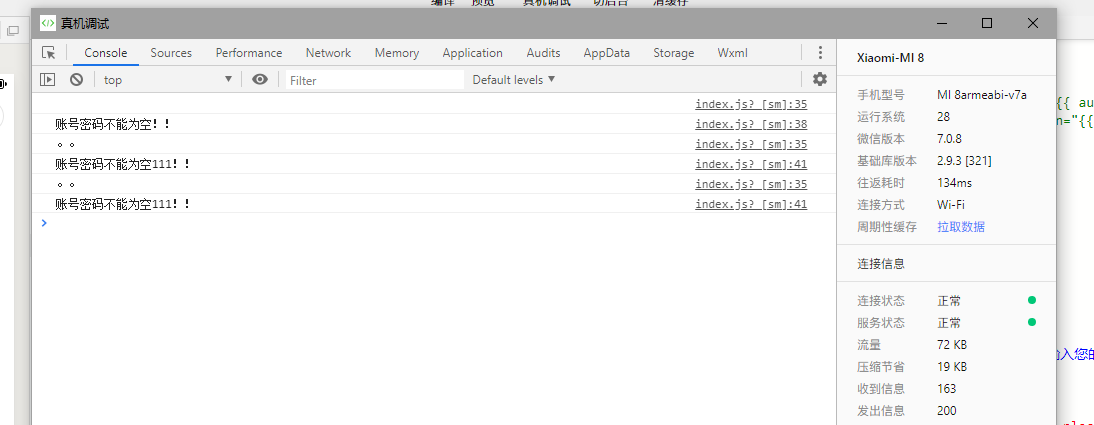 操作顺序,同样只输入账号,开发工具调试器显示还是判断账号一栏为空。如果用真机调试就是正常的