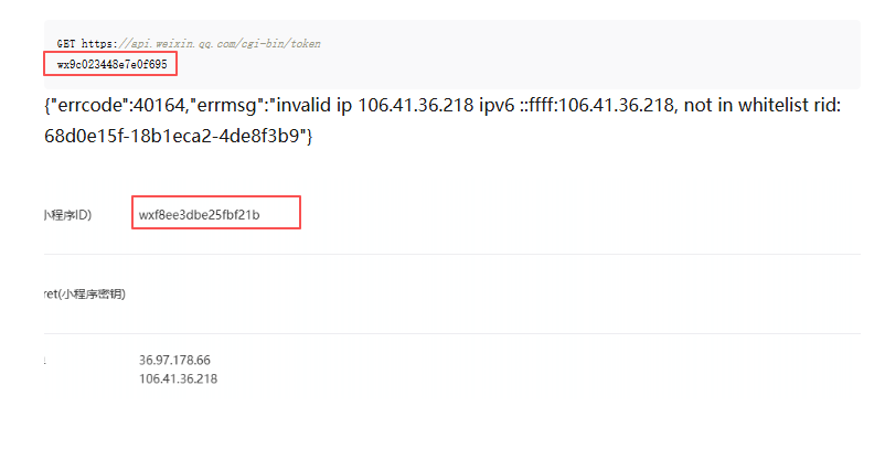 {"errcode":40164,"errmsg":"invalid ip 106.41.36.218 ipv6 ::ffff:106.41.36.218, not in whitelist rid: 68d0e15f-18b1eca2-4de8f3b9"}