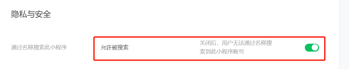 https://mp.weixin.qq.com/登录小程序账号,检查下,菜单-设置,最下方是否允许搜索
