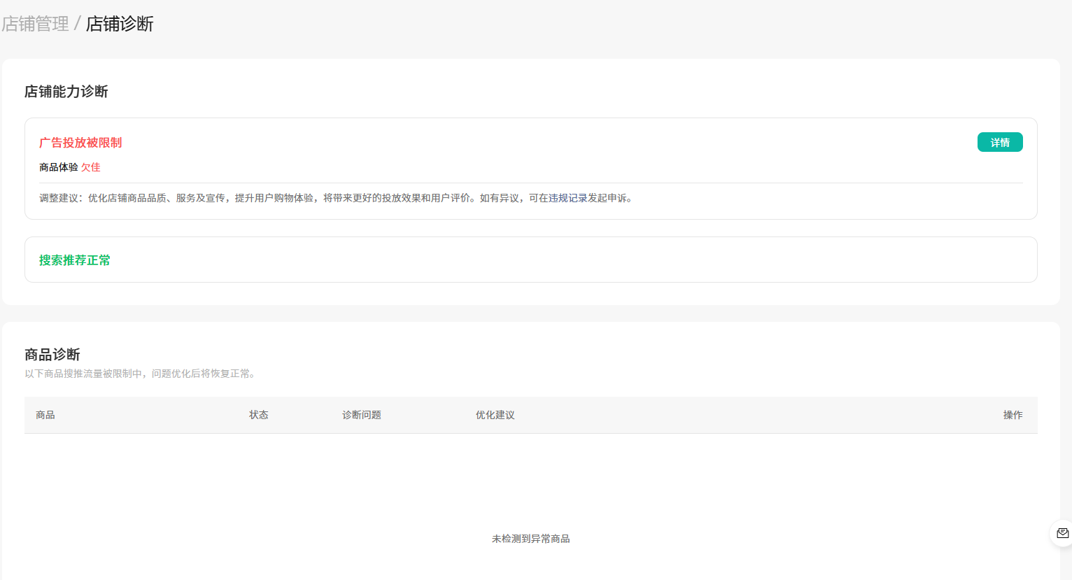 店铺管理/违规与预警不显示,所以我不没办法提供商品ID