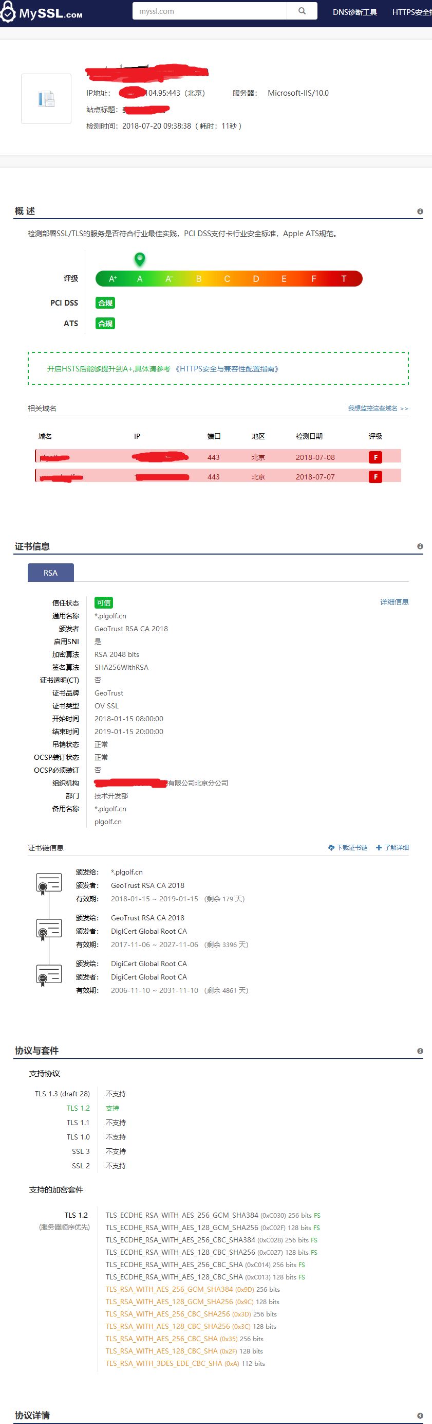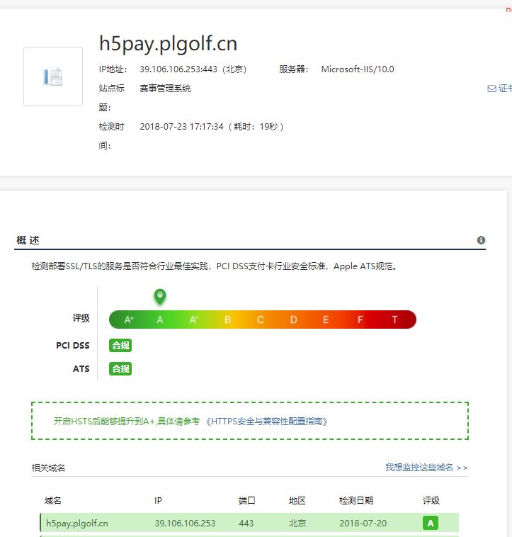 检测已经满足苹果ATS的要求了,检测地址是小程序给的官方检测地址。