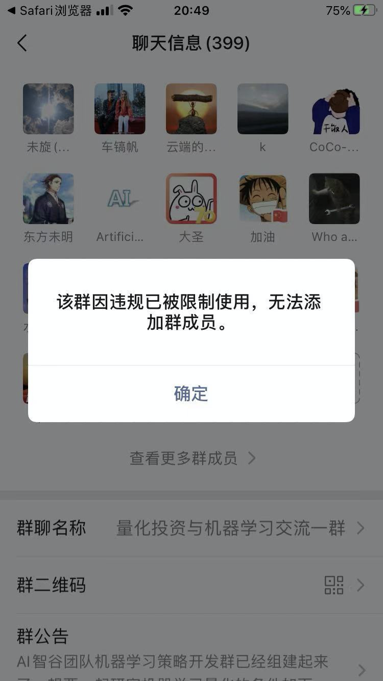 群里显示:因当前群被投诉并确认违规,已被限制使用。