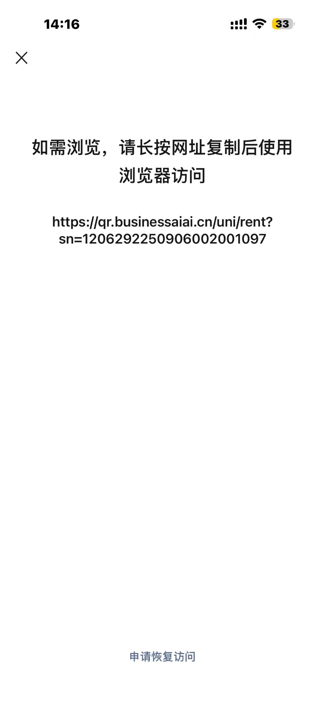 地址:https://qr.businessaiai.cn/uni/rent?sn=1206292250906002001097;配置普通二维码链接时,扫描二维码是,被提示”无法确认网页的安全性。“