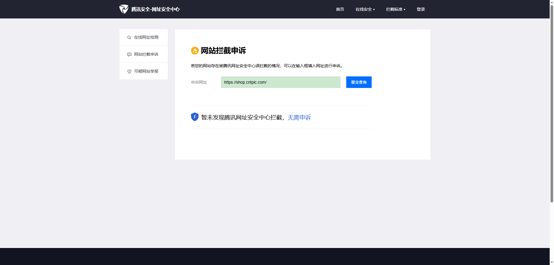 希望核实 https://shop.cntpic.com/ 域名的被拦截情况,给我们解封,谢谢。