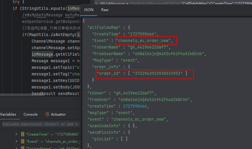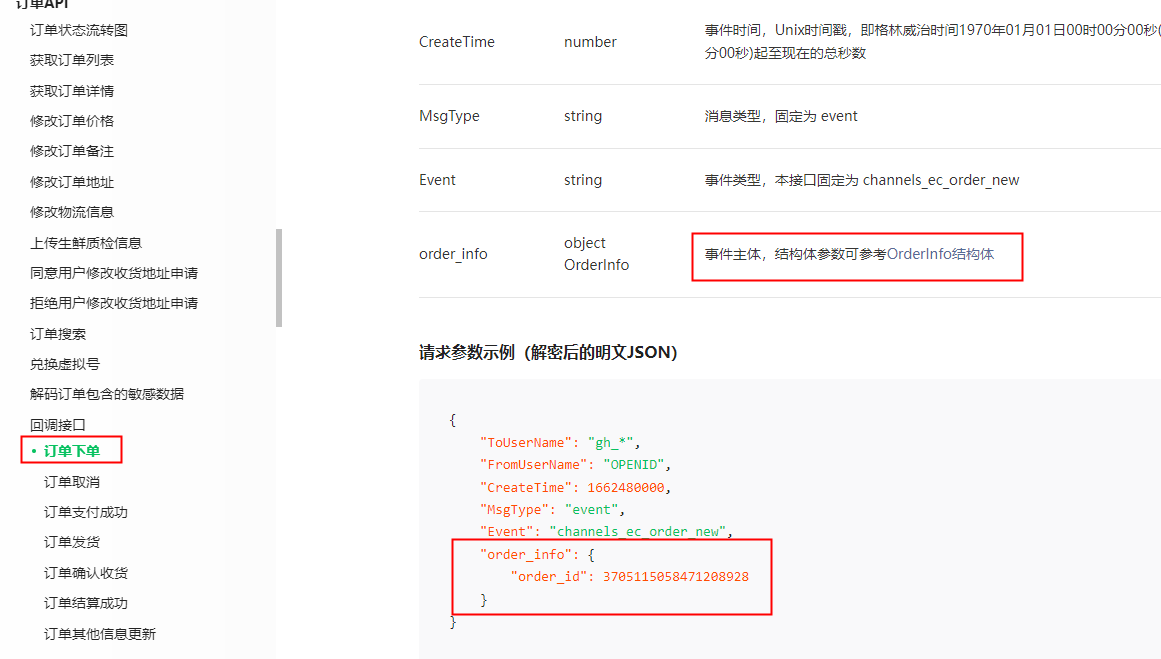 视频号订单变更消息回调;文档上请求体的orderInfo中的orderid是个字段,为啥测的时候,返回的是个orderId集合?