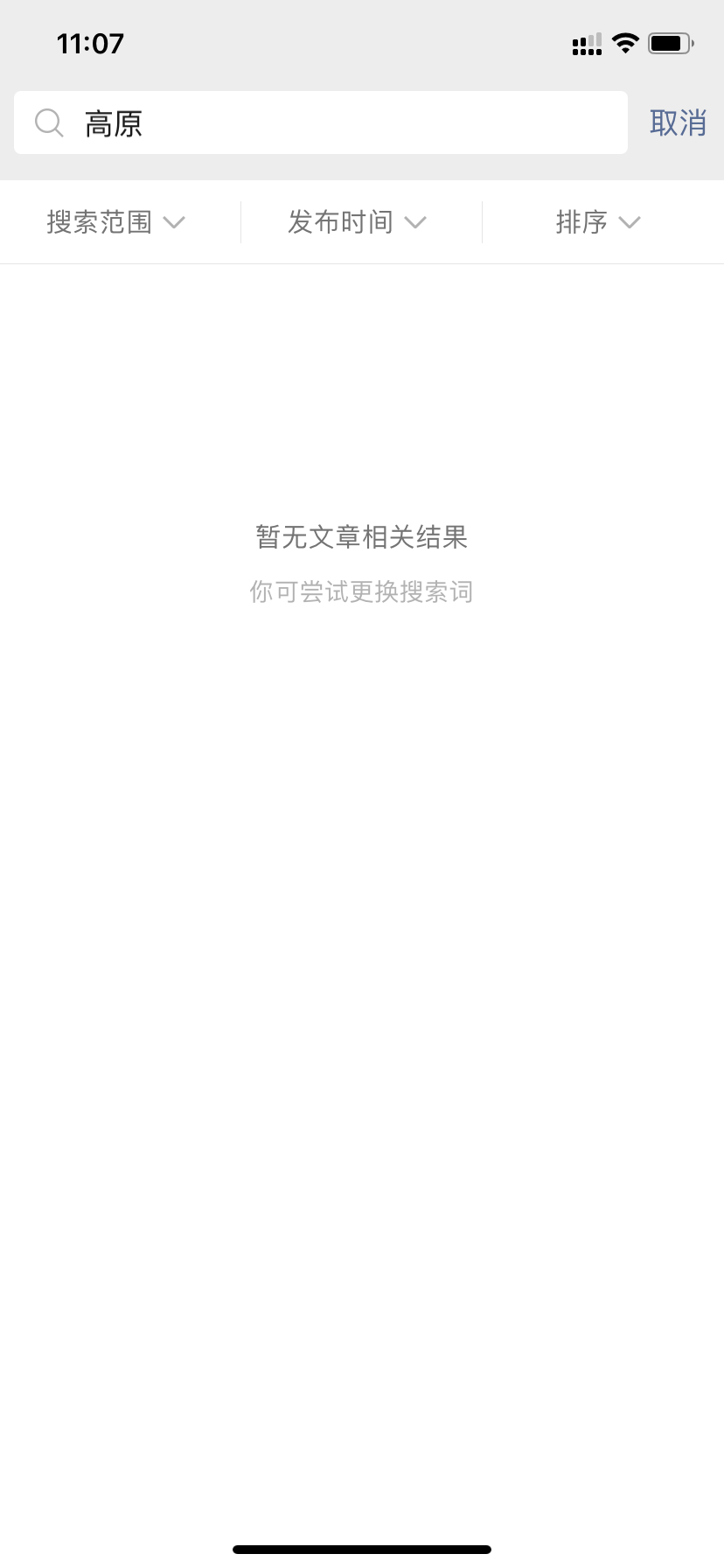 在号内搜索,任意关键词,勾选任何时间年份,选择任何搜索范围,都无法检索出文章