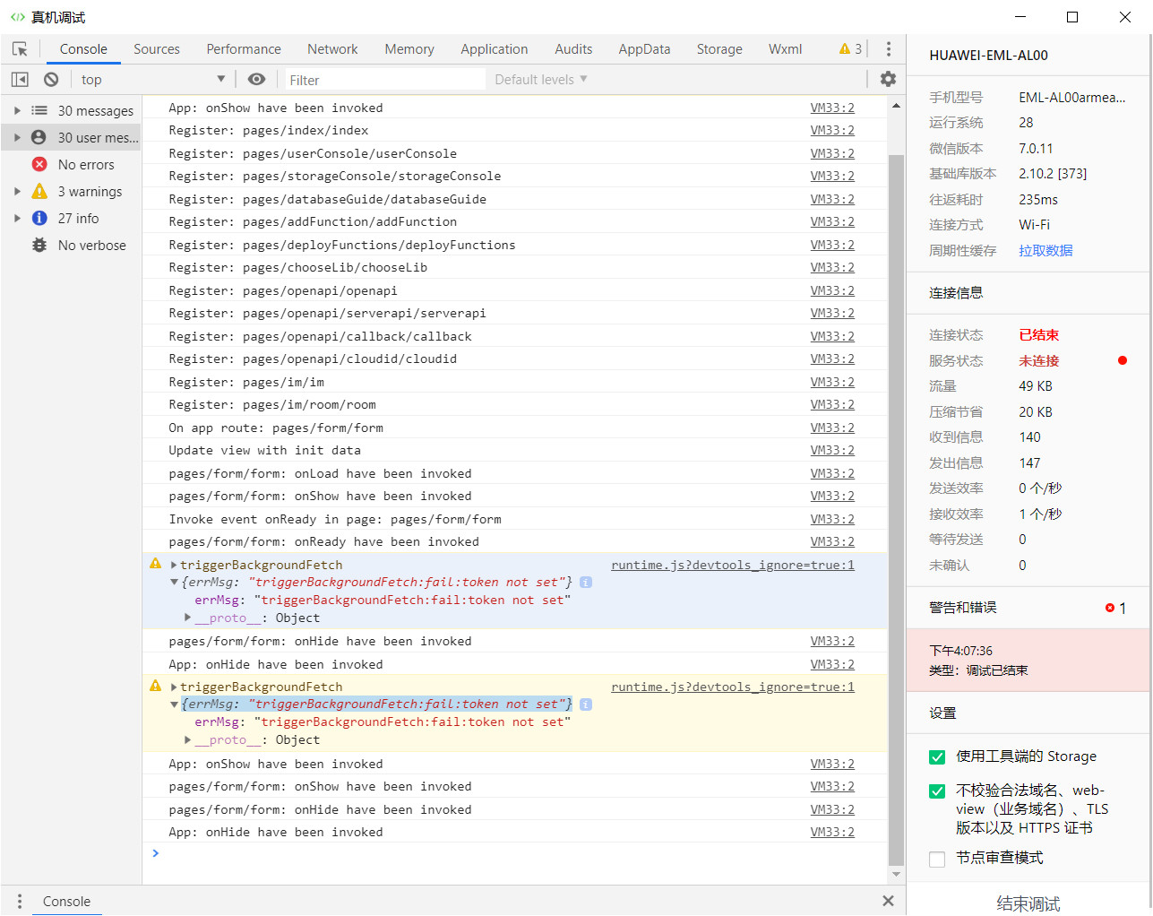 点击真机调试后白屏,报错如下。