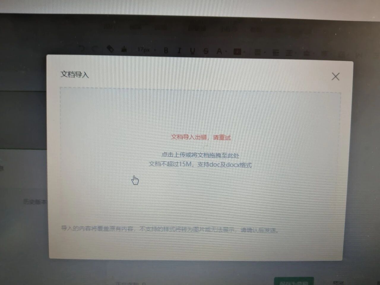 页面上写了对上传文件的要求,确认满足?确认满足条件后有没有重新试试?