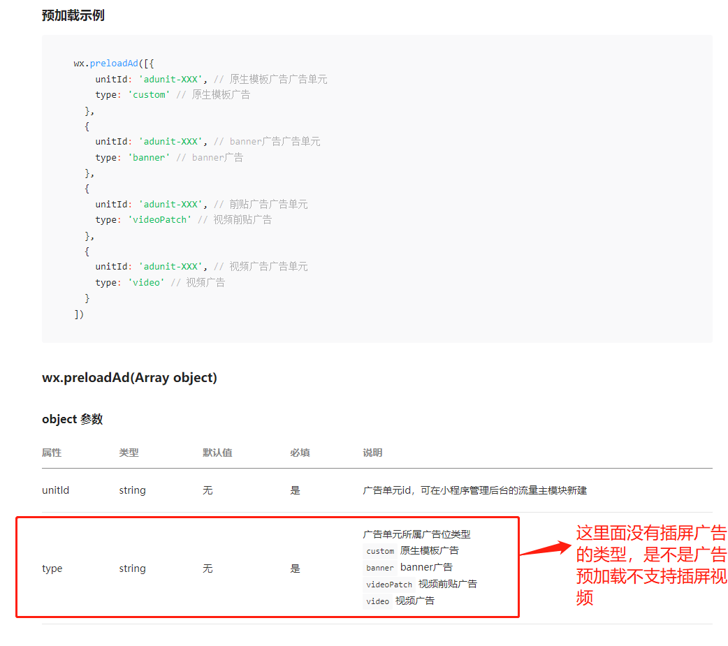 wx.preloadAd 广告预加载是不支持插屏视频吗?