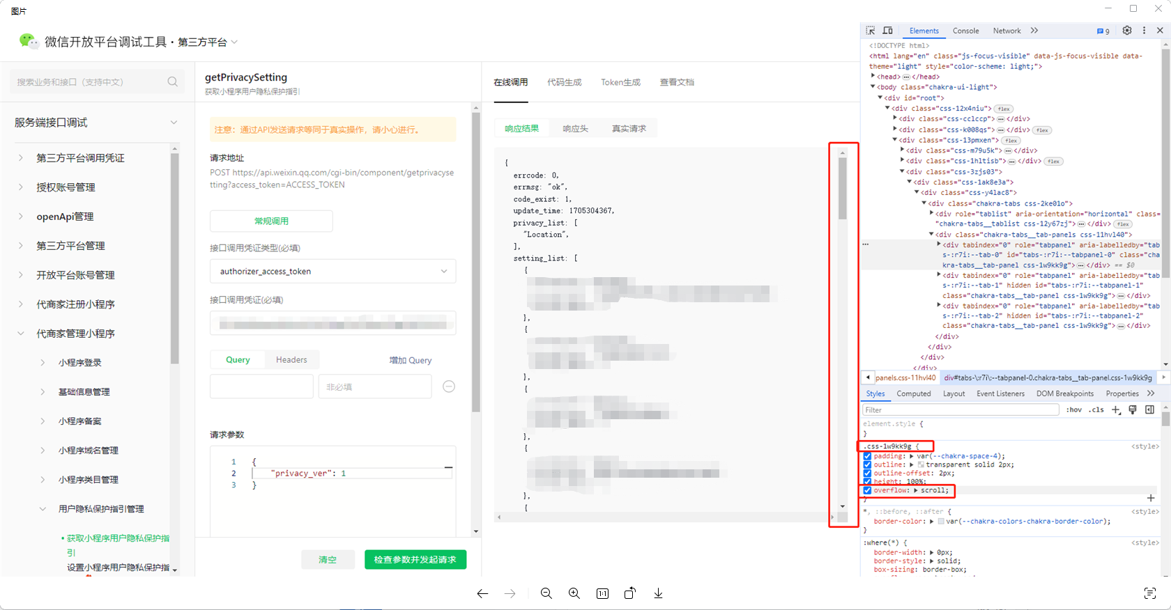 入口:https://developers.weixin.qq.com/apiExplorer?apiName=getPrivacySetting&plat=thirdparty