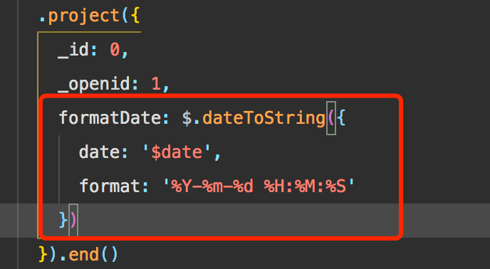 2、调用官方提供的函数dateToString做日期转换,将日期从日期转成字符串时间,显示在页面上,代码如下红色框: