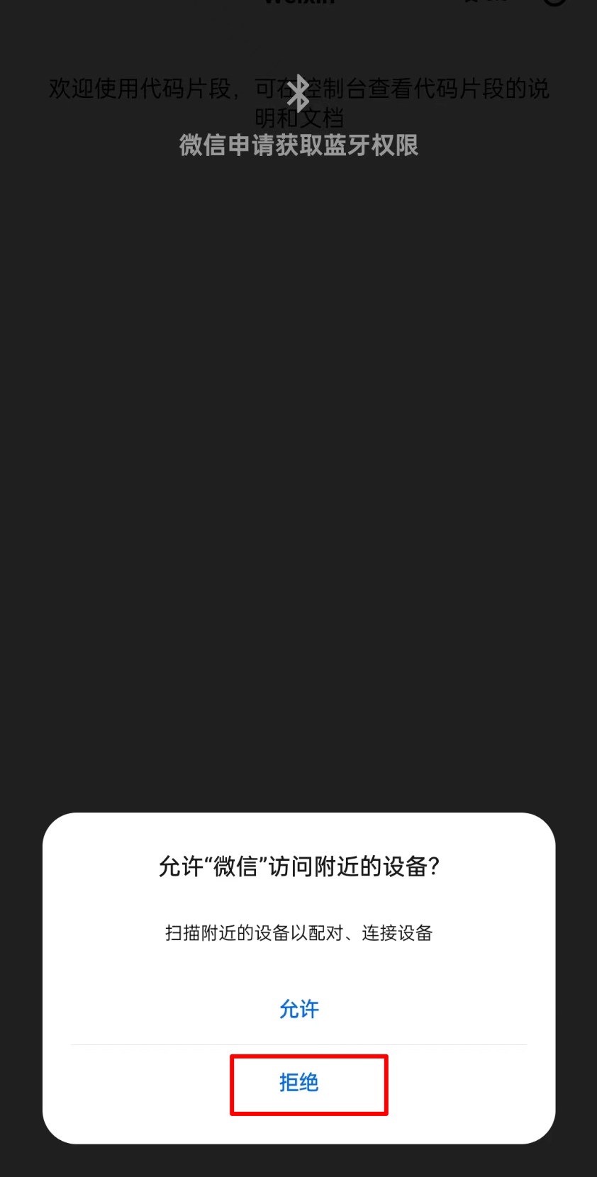 安卓手机,拒绝扫描附近设备后,关闭小程序,调用startBeaconDiscovery接口,小程序会自动弹出