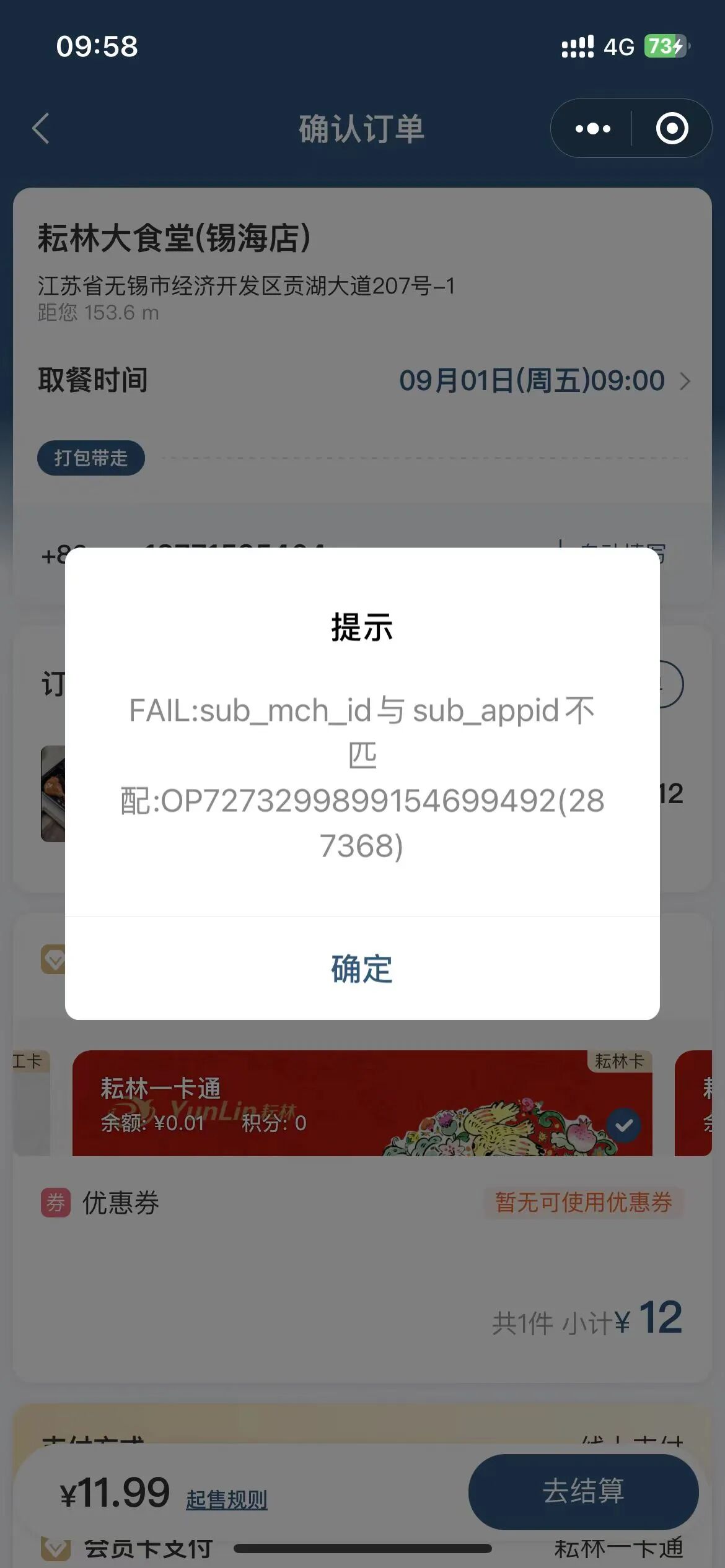 一个主体注册了2个小程序,另一个小程序正常,但是这个小程序使用微信支付的时候就报错网上查了好多资料都没有解决方法