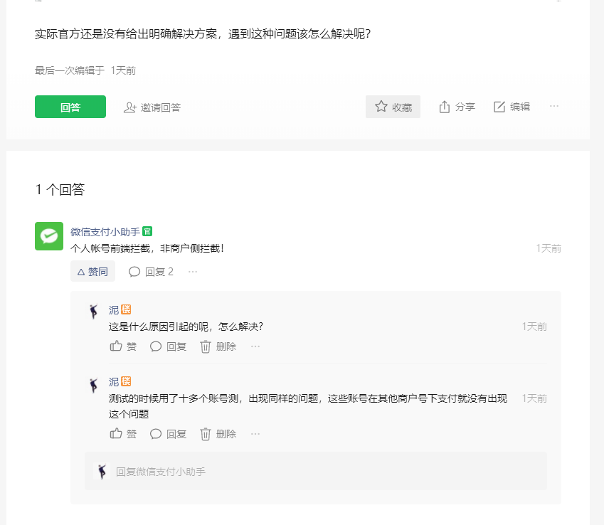 你好,微信支付相关问题麻烦在微信支付专区提问,我们有专门的人员处理